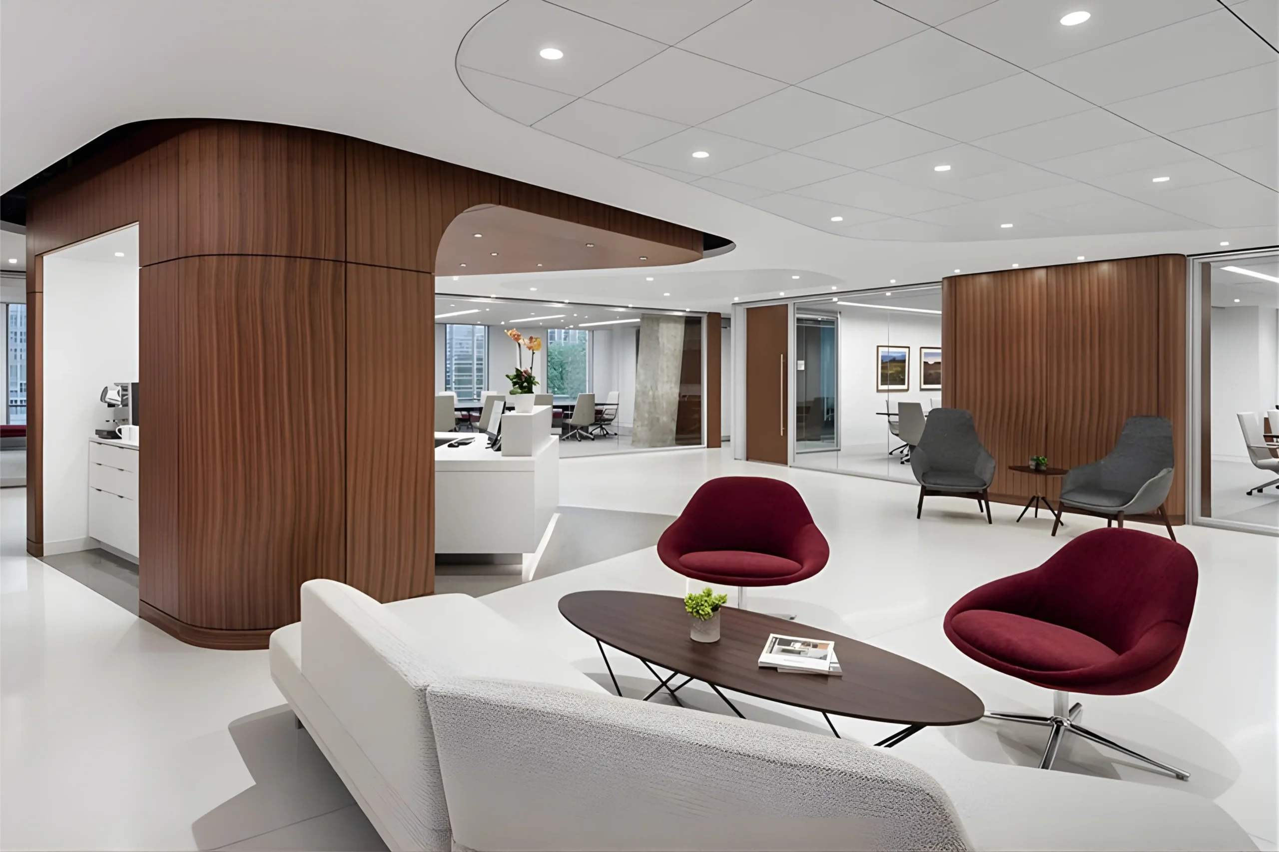 As a forward-thinking organization, the firm sought to rethink its workplace to better reflect the evolving needs of its business. Rising rental costs prompted a shift toward smaller private offices to optimize square footage, while shared spaces were reimagined to better support a hybrid work culture.