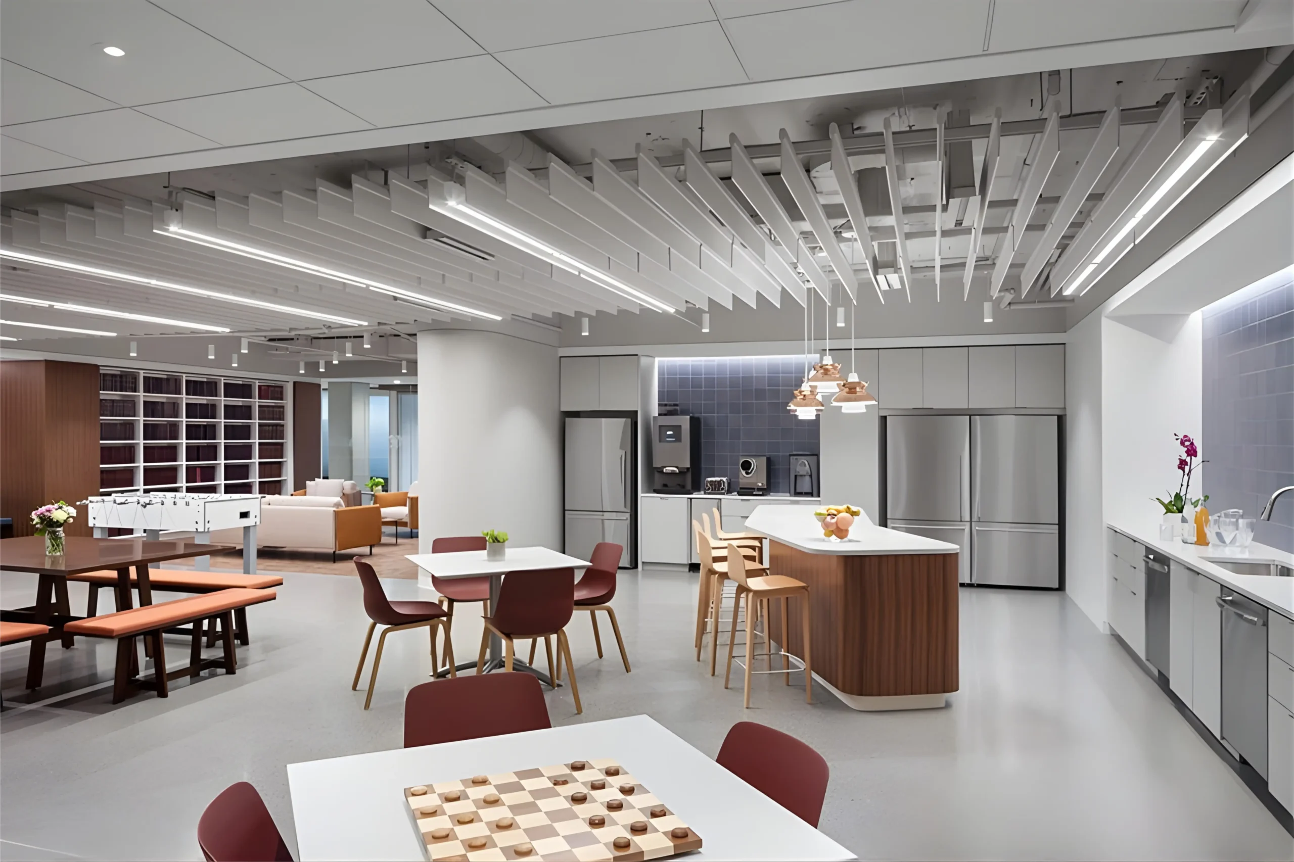 Private offices were furnished with modern, ergonomic, height-adjustable solutions that preserved a traditional law firm aesthetic. Lounge and common areas were designed as welcoming environments that encourage connection, comfort, and informal collaboration—including spaces for employees to recharge and engage beyond focused work.