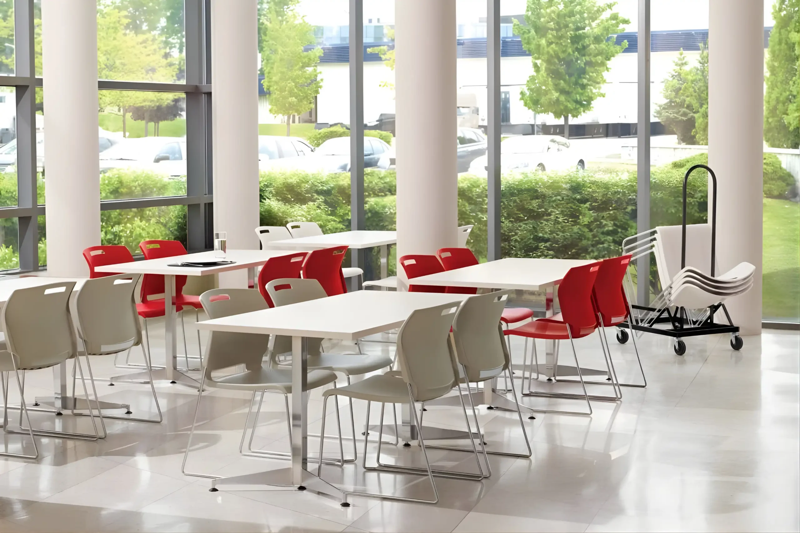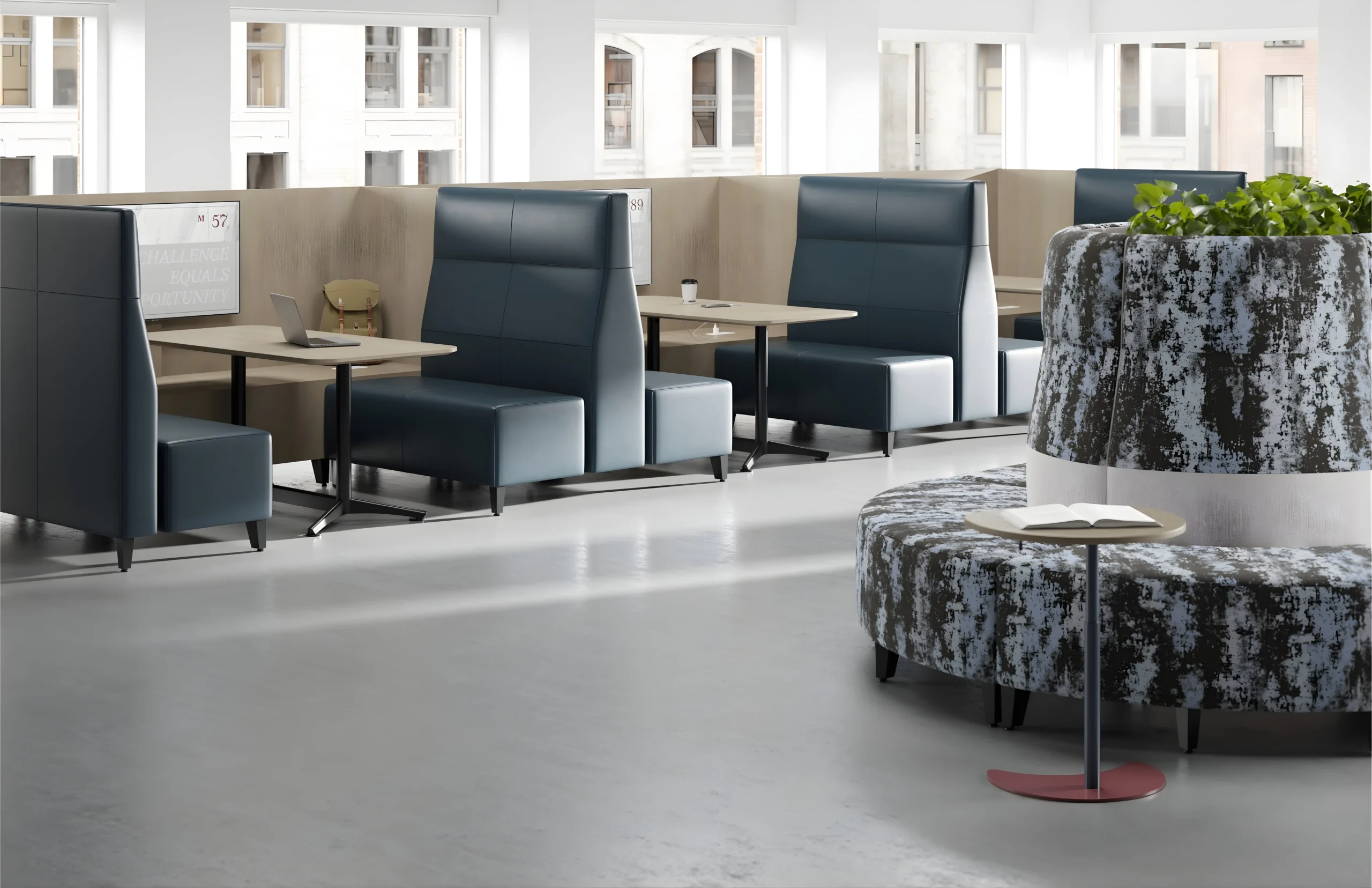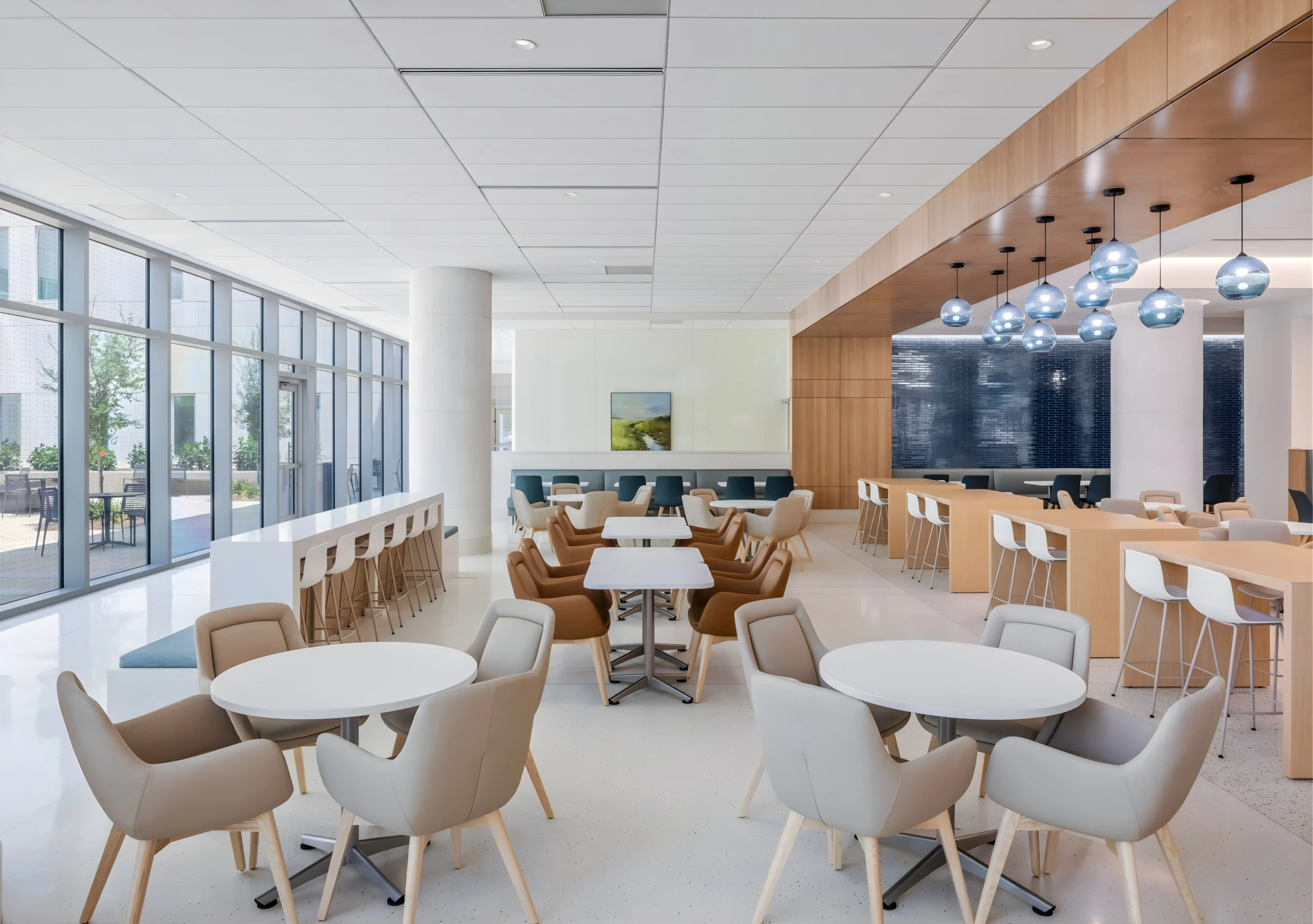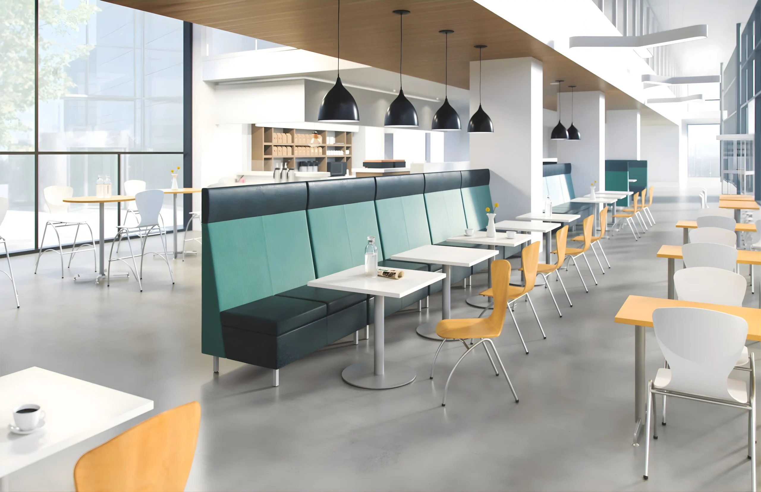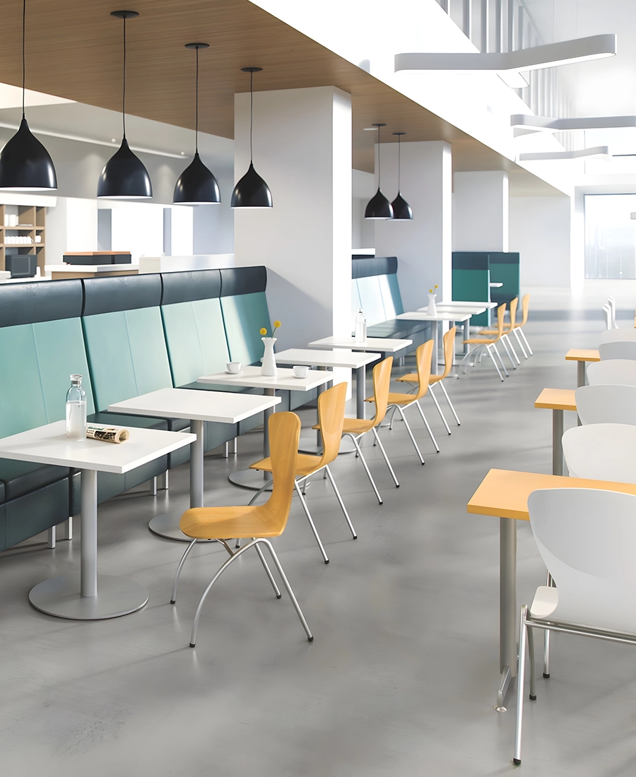 Durable surfaces and flexible seating support daily use while maintaining a calm, inviting atmosphere.