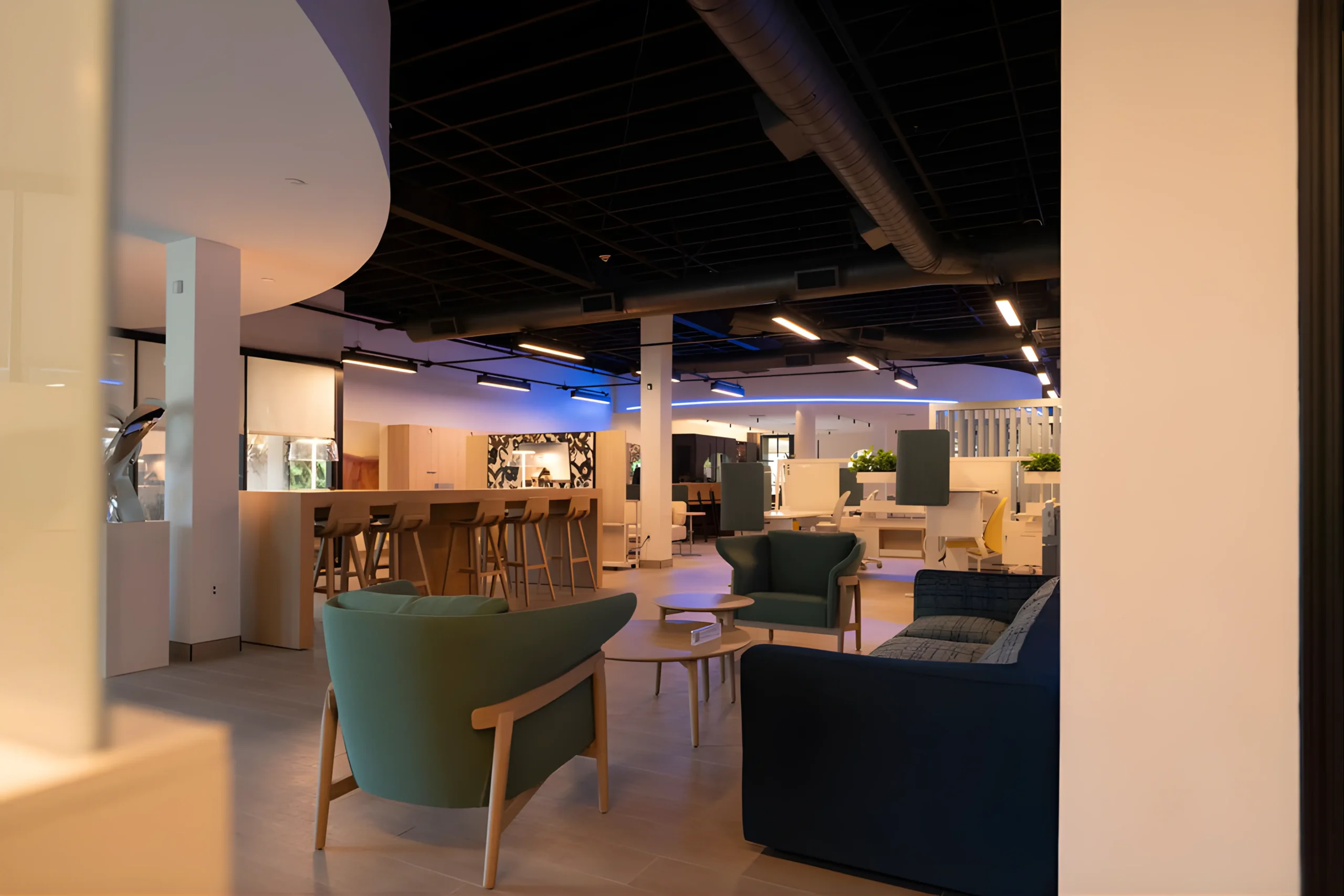 We design ancillary spaces with soft seating, layered lighting, natural materials, and human-scaled layouts that transform transitional areas into welcoming environments that bring the ease of home into the workplace.
