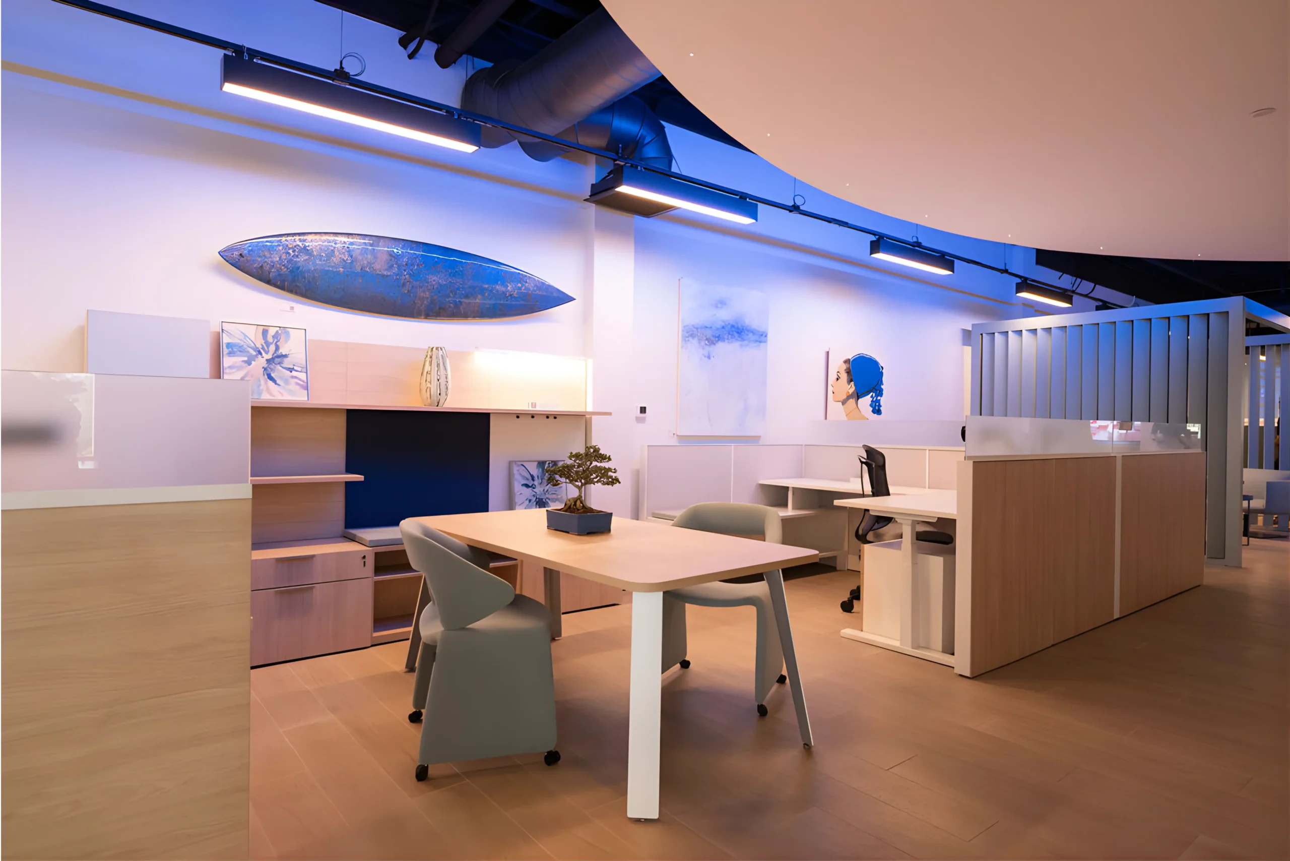 We begin every partnership with a thoughtful consultation to understand your needs and your vision. Our services in flooring, fabrication, custom furniture, move management, and audiovisual solutions work together to strengthen our core furniture expertise and deliver a seamless experience from concept to completion.